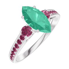 Bague Or blanc 18 carats - Émeraude Marquise 0.7 carat - Pierres de côté Rubis - Sertissage Rubis