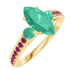 Bague Or jaune 18 carats - Émeraude Marquise 0.7 carat - Pierres de côté Émeraude - Sertissage Rubis