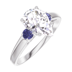Bague Or blanc 9 carats - Diamant Poire 1 carat - Pierres de côté Saphir bleu