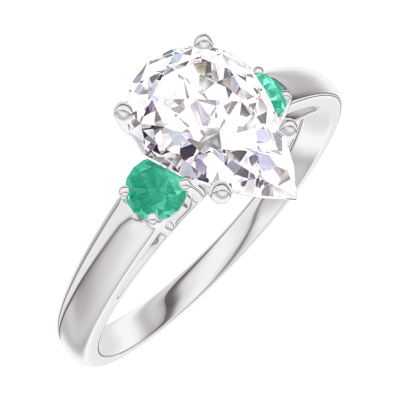 « L'ATELIER » Nº 167684Bague Or blanc 9 carats - Diamant Poire 1 carat - Pierres de côté Émeraude