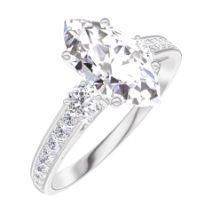 Bague Or blanc 9 carats - Diamant Marquise 1 carat - Pierres de côté Diamant - Sertissage Diamant