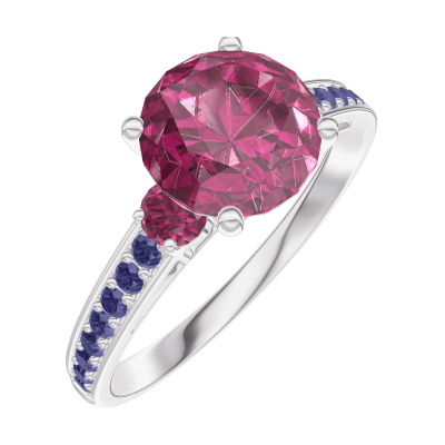 « L'ATELIER » Nº 167856Bague Or blanc 9 carats - Rubis Rond 1 carat - Pierres de côté Rubis - Sertissage Saphir bleu 4.9 (14)