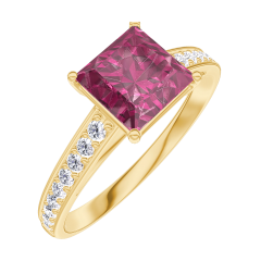 « L'ATELIER » Nº 167906Bague Or jaune 9 carats - Rubis Princesse 1 carat - Sertissage Diamant