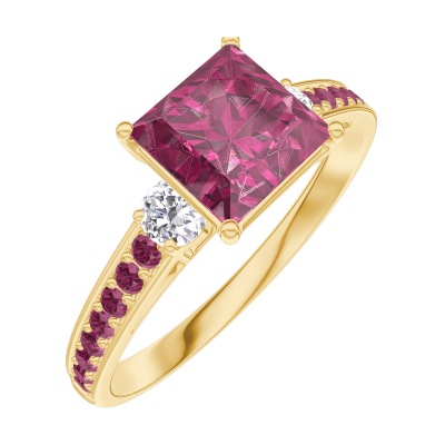 « L'ATELIER » Nº 167929Bague Or jaune 18 carats - Rubis Princesse 1 carat - Pierres de côté Diamant - Sertissage Rubis