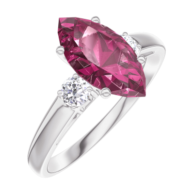 « L'ATELIER » Nº 168323Bague Or blanc 18 carats - Rubis Marquise 1 carat - Pierres de côté Diamant