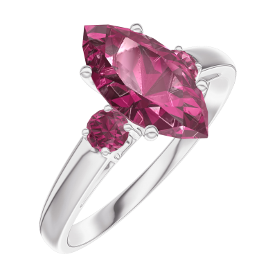 « L'ATELIER » Nº 168344Bague Or blanc 9 carats - Rubis Marquise 1 carat - Pierres de côté Rubis