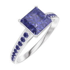 Pourquoi nous faire confiance ? « L'ATELIER » Nº 168516 Bague Or blanc 9 carats - Saphir bleu Princesse 1 carat - Sertissage Saphir bleu