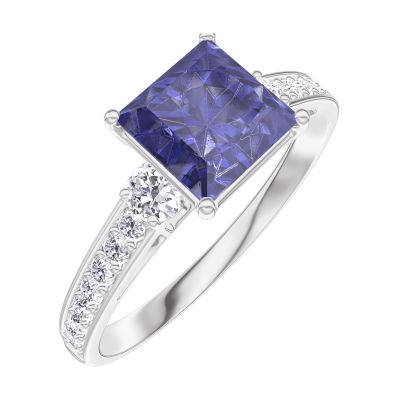 « L'ATELIER » Nº 168528Bague Or blanc 9 carats - Saphir bleu Princesse 1 carat - Pierres de côté Diamant - Sertissage Diamant