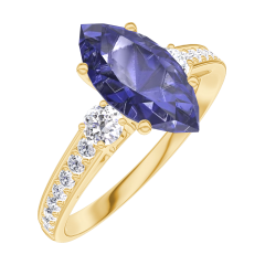 « L'ATELIER » Nº 168926Bague Or jaune 9 carats - Saphir bleu Marquise 1 carat - Pierres de côté Diamant - Sertissage Diamant