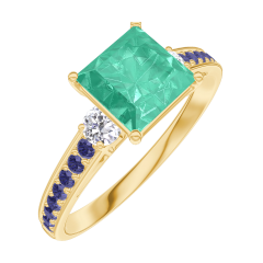 « L'ATELIER » Nº 169134Bague Or jaune 9 carats - Émeraude Princesse 1 carat - Pierres de côté Diamant - Sertissage Saphir bleu
