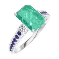 « L'ATELIER » Nº 169235Bague Or blanc 18 carats - Émeraude Rectangle 1 carat - Pierres de côté Diamant - Sertissage Saphir bleu 4.5