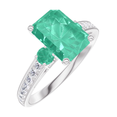 « L'ATELIER » Nº 169287Bague Or blanc 18 carats - Émeraude Rectangle 1 carat - Pierres de côté Émeraude - Sertissage Diamant 4.5