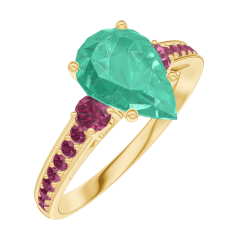Bague Or jaune 9 carats - Émeraude Poire 1 carat - Pierres de côté Rubis - Sertissage Rubis