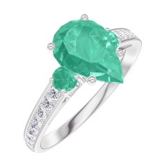 Bague Or blanc 18 carats - Émeraude Poire 1 carat - Pierres de côté Émeraude - Sertissage Diamant