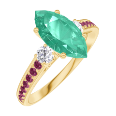 Bague Or jaune 9 carats - Émeraude Marquise 1 carat - Pierres de côté Diamant - Sertissage Rubis