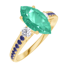 « L'ATELIER » Nº 169534Bague Or jaune 9 carats - Émeraude Marquise 1 carat - Pierres de côté Diamant - Sertissage Saphir bleu