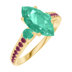 Bague Or jaune 18 carats - Émeraude Marquise 1 carat - Pierres de côté Émeraude - Sertissage Rubis