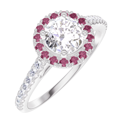 « L'ATELIER » Nº170023Bague Or blanc 18 carats - Diamant Rond 0.5 carat - Halo Rubis - Sertissage Diamant 5 (18)