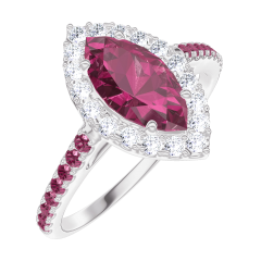 Bague Or blanc 9 carats - Rubis Marquise 0.5 carat - Halo Diamant - Sertissage Rubis
