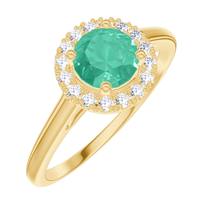 « L'ATELIER » Nº 170865Bague Or jaune 18 carats - Émeraude Rond 0.5 carat - Halo Diamant 5 (18)