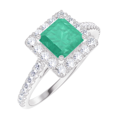 Pourquoi nous faire confiance ? « L'ATELIER » Nº 170920 Bague Or blanc 9 carats - Émeraude Princesse 0.5 carat - Halo Diamant - Sertissage Diamant