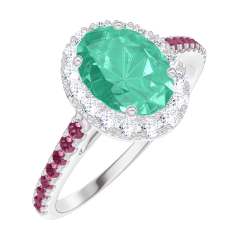 Pourquoi nous faire confiance ? « L'ATELIER » Nº 171020 Bague Or blanc 9 carats - Émeraude Ovale 0.5 carat - Halo Diamant - Sertissage Rubis
