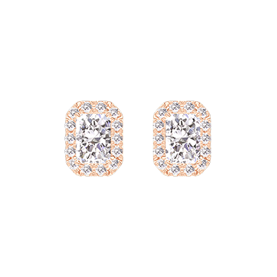« L'ATELIER » Nº 178281Boucles d'oreilles Or rose 9 carats - Diamant synthétique Rectangle 0.3 carat (2 X) - Halo Diamant synthétique