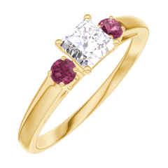 Bague Or jaune 18 carats - Diamant synthétique Princesse 0.3 carat - Pierres de côté Rubis