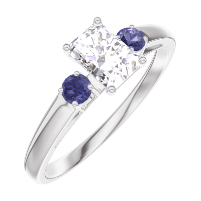 « L'ATELIER » Nº180264Bague Or blanc 9 carats - Diamant synthétique Rectangle 0.3 carat - Pierres de côté Saphir bleu
