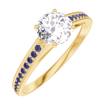 « L'ATELIER » Nº182413Bague Or jaune 18 carats - Diamant synthétique Rond 0.5 carat - Sertissage Saphir bleu 4.8 (12)
