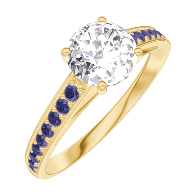 « L'ATELIER » Nº184813Bague Or jaune 18 carats - Diamant synthétique Rond 0.7 carat - Sertissage Saphir bleu 5 (6)