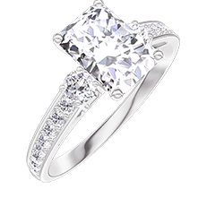 Pourquoi nous faire confiance ? « L'ATELIER » Nº 185027 Bague Or blanc 18 carats - Diamant synthétique Rectangle 0.7 carat - Pierres de côté Diamant synthétique - Sertissage Diamant synthétique