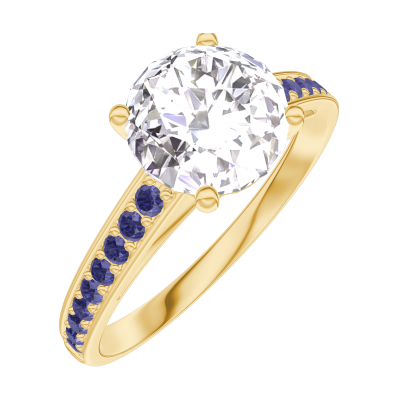 « L'ATELIER » Nº187213Bague Or jaune 18 carats - Diamant synthétique Rond 1 carat - Sertissage Saphir bleu 4.8 (11)