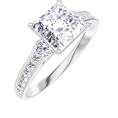 Pourquoi nous faire confiance ? « L'ATELIER » Nº 187328 Bague Or blanc 9 carats - Diamant synthétique Princesse 1 carat - Pierres de côté Diamant synthétique - Sertissage Diamant synthétique
