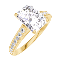 Bague Or jaune 9 carats - Diamant synthétique Rectangle 1 carat - Sertissage Diamant synthétique