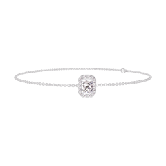« L'ATELIER » Nº 200076Bracelet Or blanc 9 carats - Diamant Rectangle 0.3 carat - Halo Diamant - Chaîne Forçat