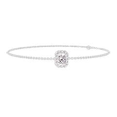 Pourquoi nous faire confiance ? « L'ATELIER » Nº 200267 Bracelet Or blanc 18 carats - Diamant synthétique Rectangle 0.3 carat - Halo Diamant synthétique - Chaîne Forçat