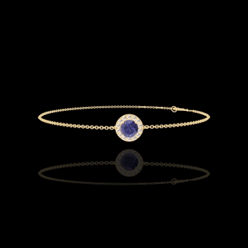 « L'ATELIER » Nº200585Bracelet Or jaune 18 carats - Saphir bleu Rond 0.3 carat - Halo Diamant - Chaîne Forçat 5 (3)