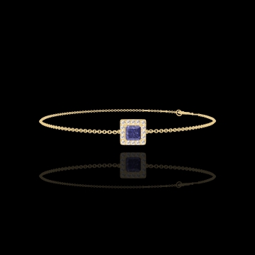 « L'ATELIER » Nº200617Bracelet Or jaune 18 carats - Saphir bleu Princesse 0.3 carat - Halo Diamant - Chaîne Forçat