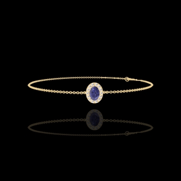 « L'ATELIER » Nº200681Bracelet Or jaune 18 carats - Saphir bleu Ovale 0.3 carat - Halo Diamant - Chaîne Forçat