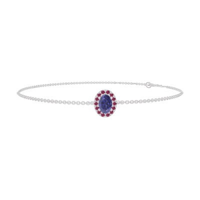 « L'ATELIER » Nº200692Bracelet Or blanc 9 carats - Saphir bleu Ovale 0.3 carat - Halo Rubis - Chaîne Forçat