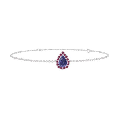 « L'ATELIER » Nº200724Bracelet Or blanc 9 carats - Saphir bleu Poire 0.3 carat - Halo Rubis - Chaîne Forçat