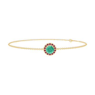 « L'ATELIER » Nº200785Bracelet Or jaune 18 carats - Émeraude Rond 0.3 carat - Halo Rubis - Chaîne Forçat 5 (3)