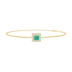 Bracelet Or jaune 18 carats - Émeraude Princesse 0.3 carat - Halo Diamant - Chaîne Vénitienne