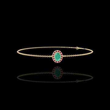 « L'ATELIER » Nº200881Bracelet Or jaune 18 carats - Émeraude Ovale 0.3 carat - Halo Rubis - Chaîne Forçat