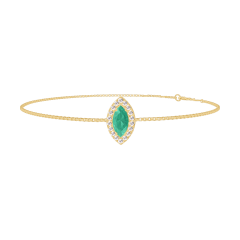 Pourquoi nous faire confiance ? « L'ATELIER » Nº 200942 Bracelet Or jaune 9 carats - Émeraude Marquise 0.3 carat - Halo Diamant - Chaîne Vénitienne