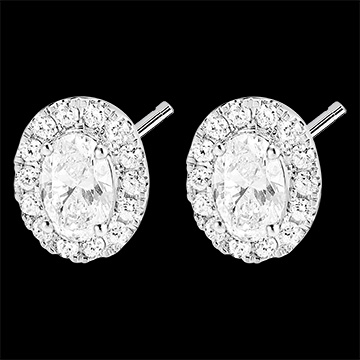 « L'ATELIER » Nº 201015Boucles d'oreilles Or blanc 18 carats - Diamant Ovale 0.3 carat (2 X) - Halo Diamant