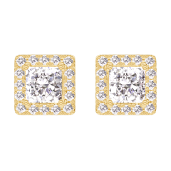 « L'ATELIER » Nº 201078Boucles d'oreilles Or jaune 9 carats - Diamant synthétique Princesse 0.3 carat (2 X) - Halo Diamant synthétique