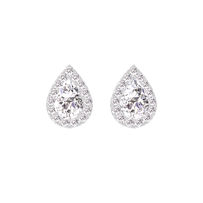 « L'ATELIER » Nº 201128Boucles d'oreilles Or blanc 9 carats - Diamant synthétique Poire 0.3 carat (2 X) - Halo Diamant synthétique