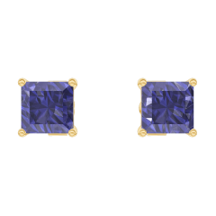 Boucles d'oreilles Or jaune 18 carats - Saphir bleu Princesse 0.3 carat (2 X)